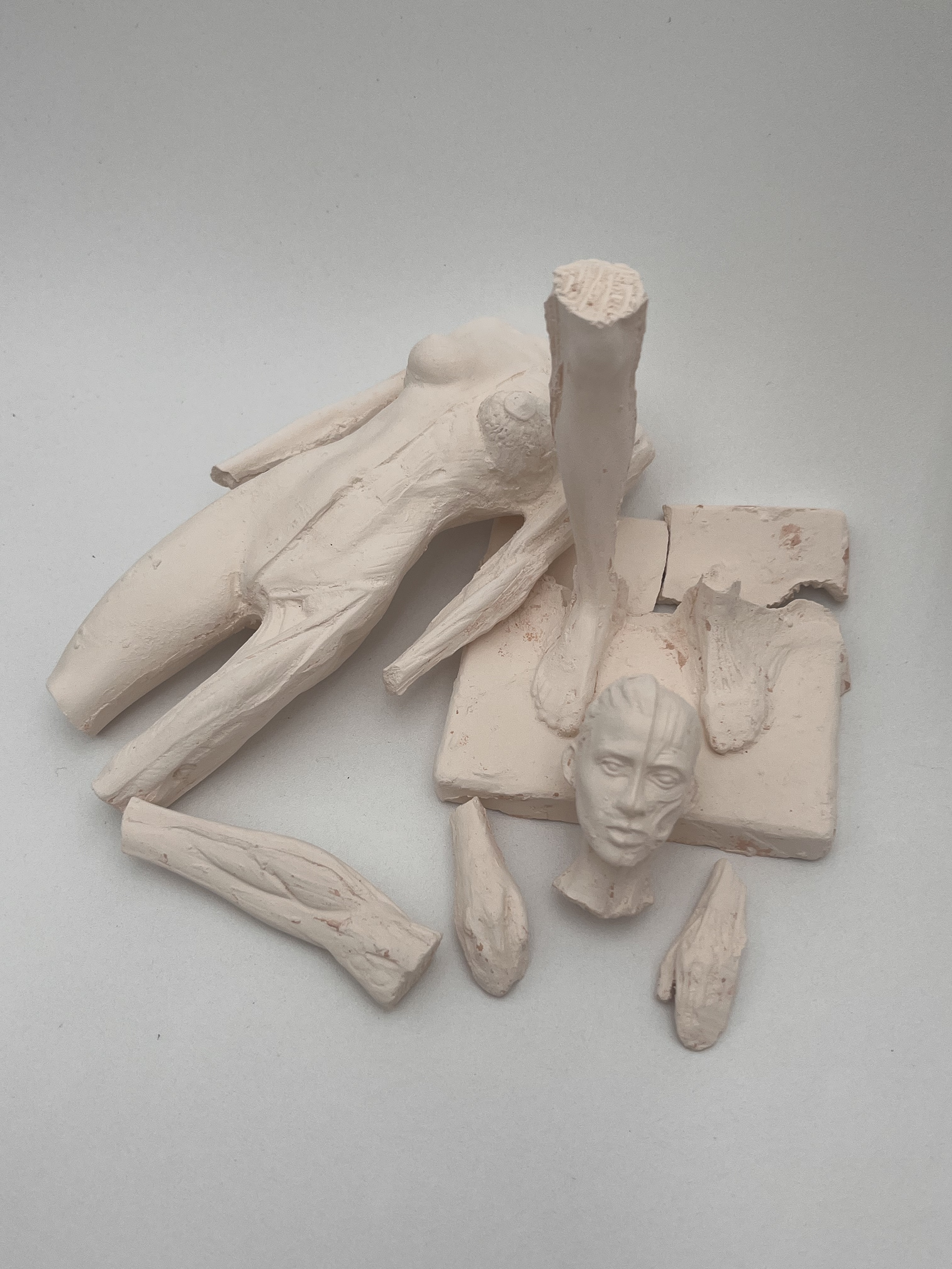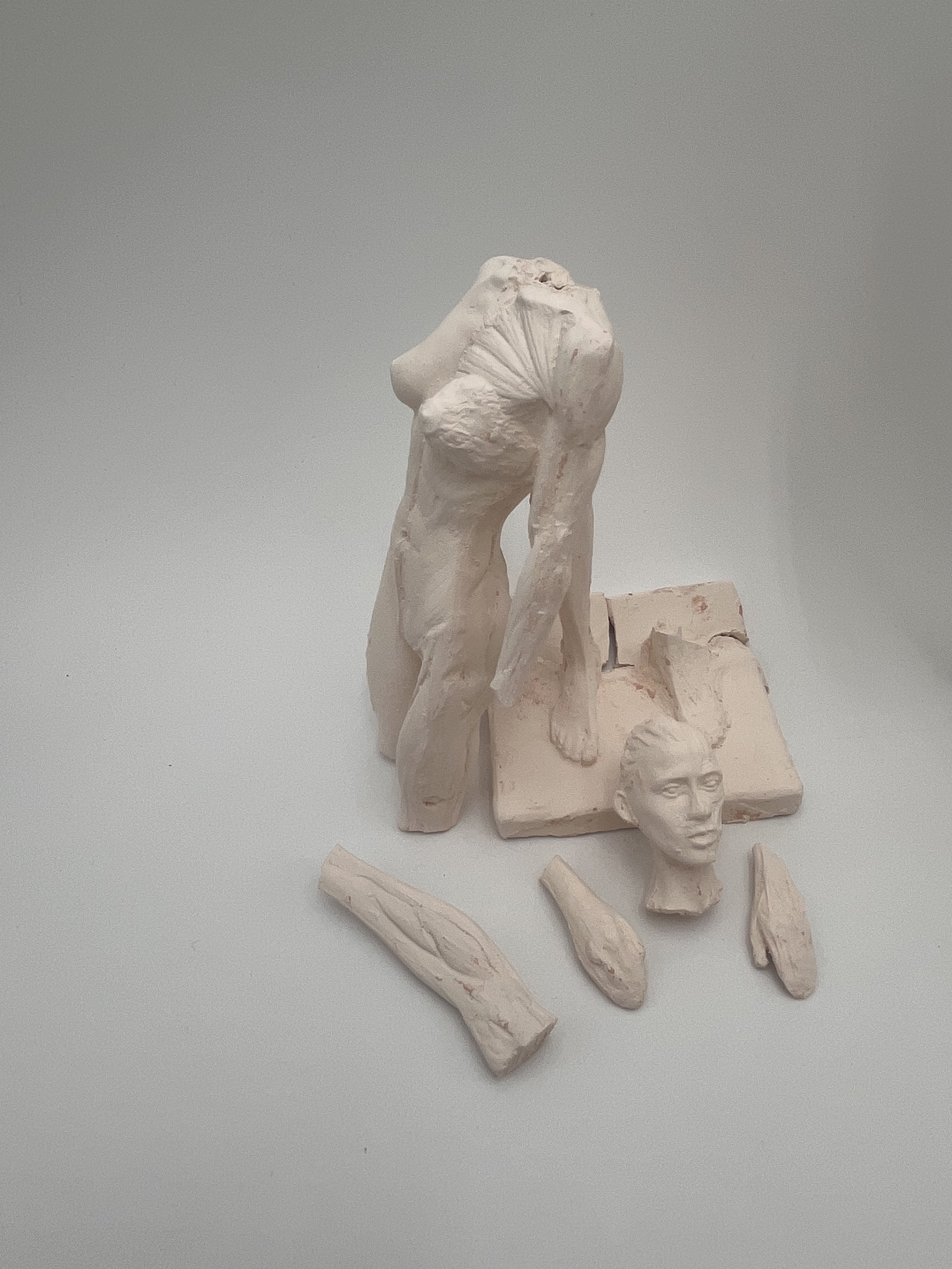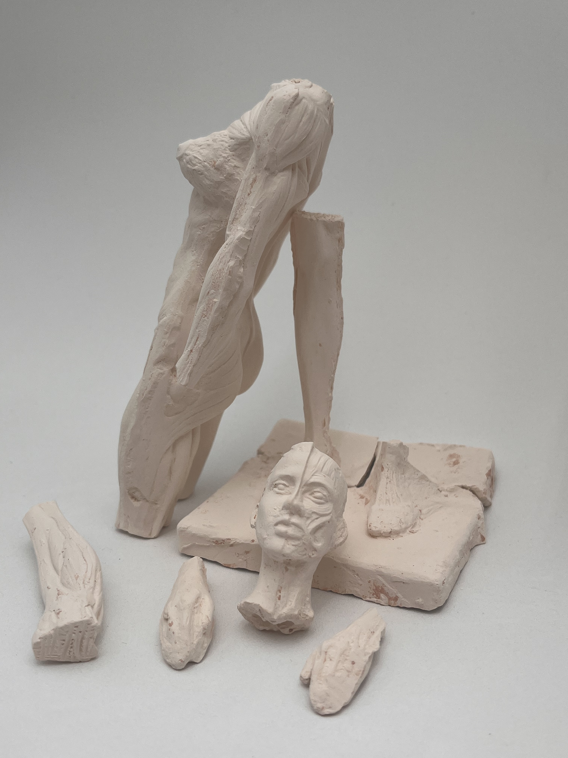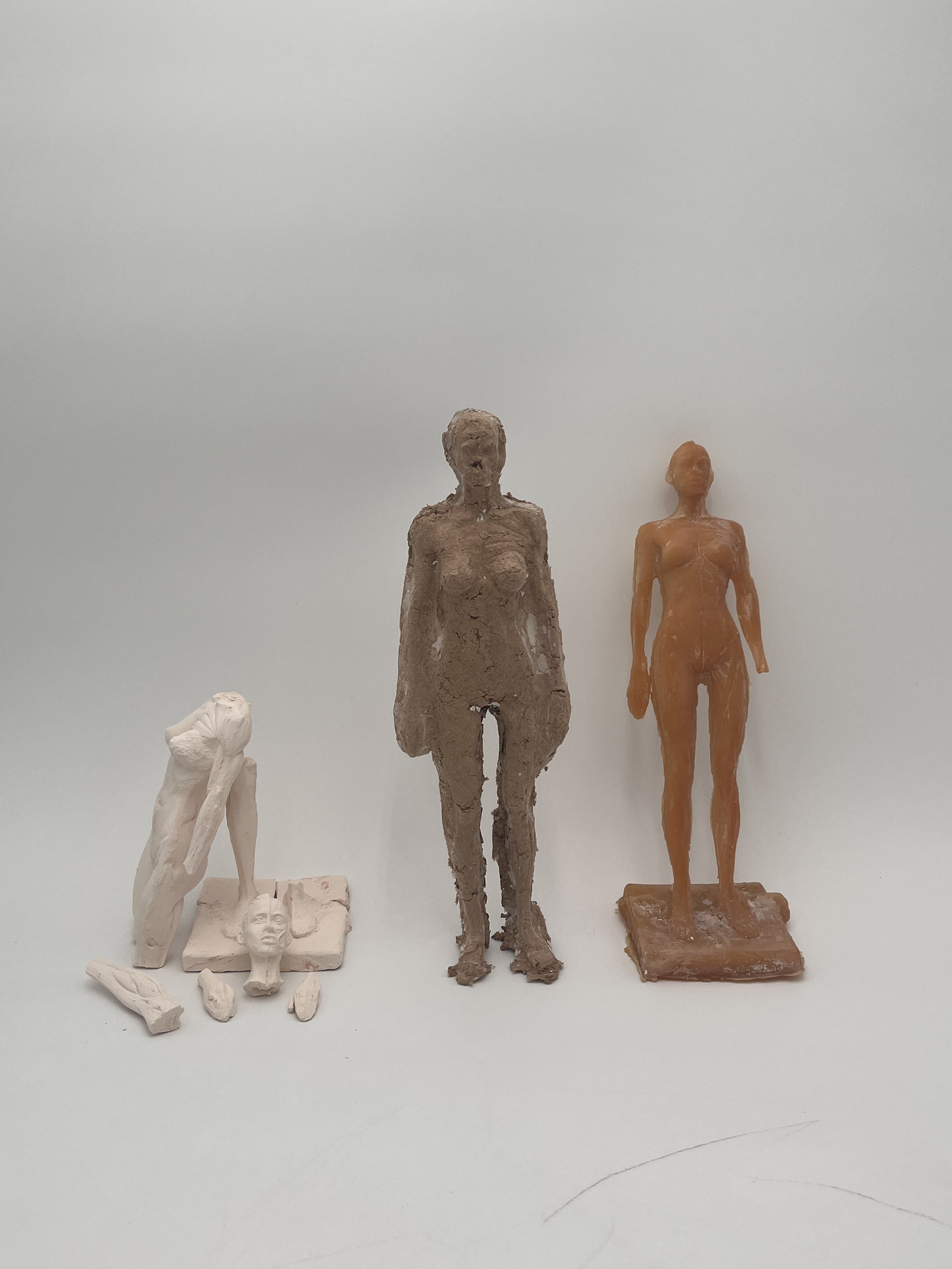 created a mold from an anatomical model. from there i casted clay, paper, and latex into the mold to create these three figures.