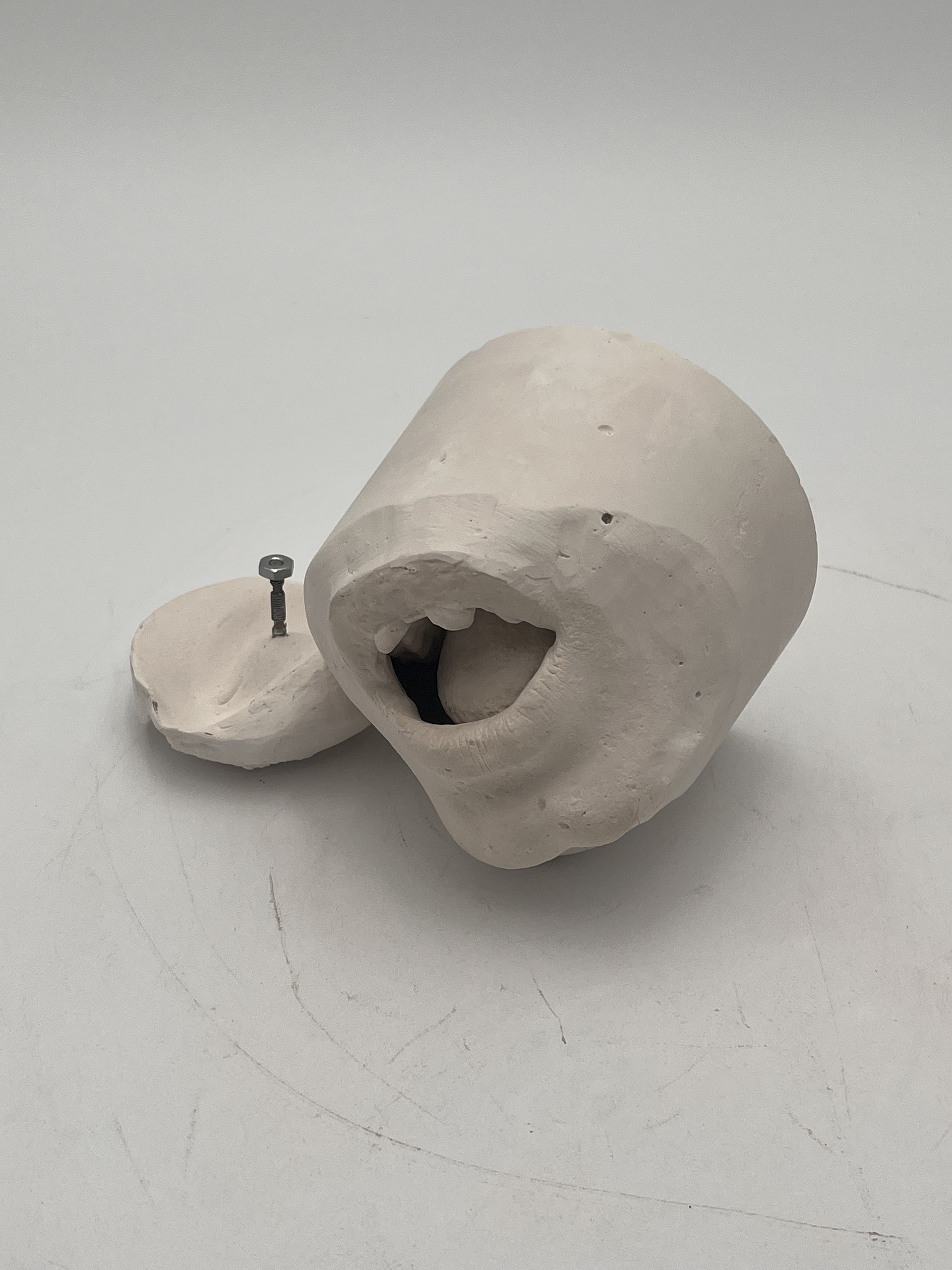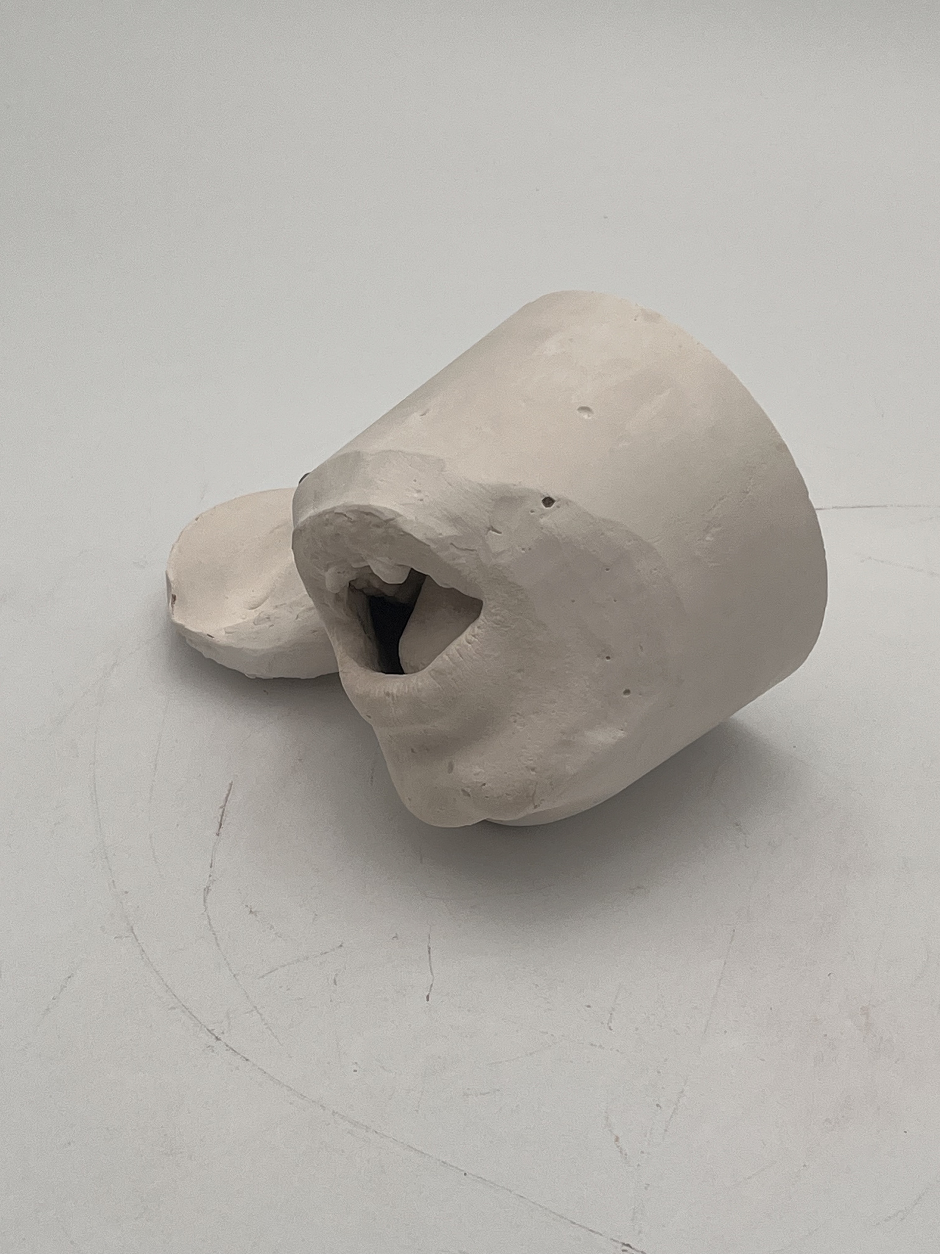 i poured skin safe solution over and into my mouth to create this sculpture. it tasted like shit and was hard to breath. the ugly teeth is my favorite part which i made by placing teeth shaped clay over my teeth before the pour.