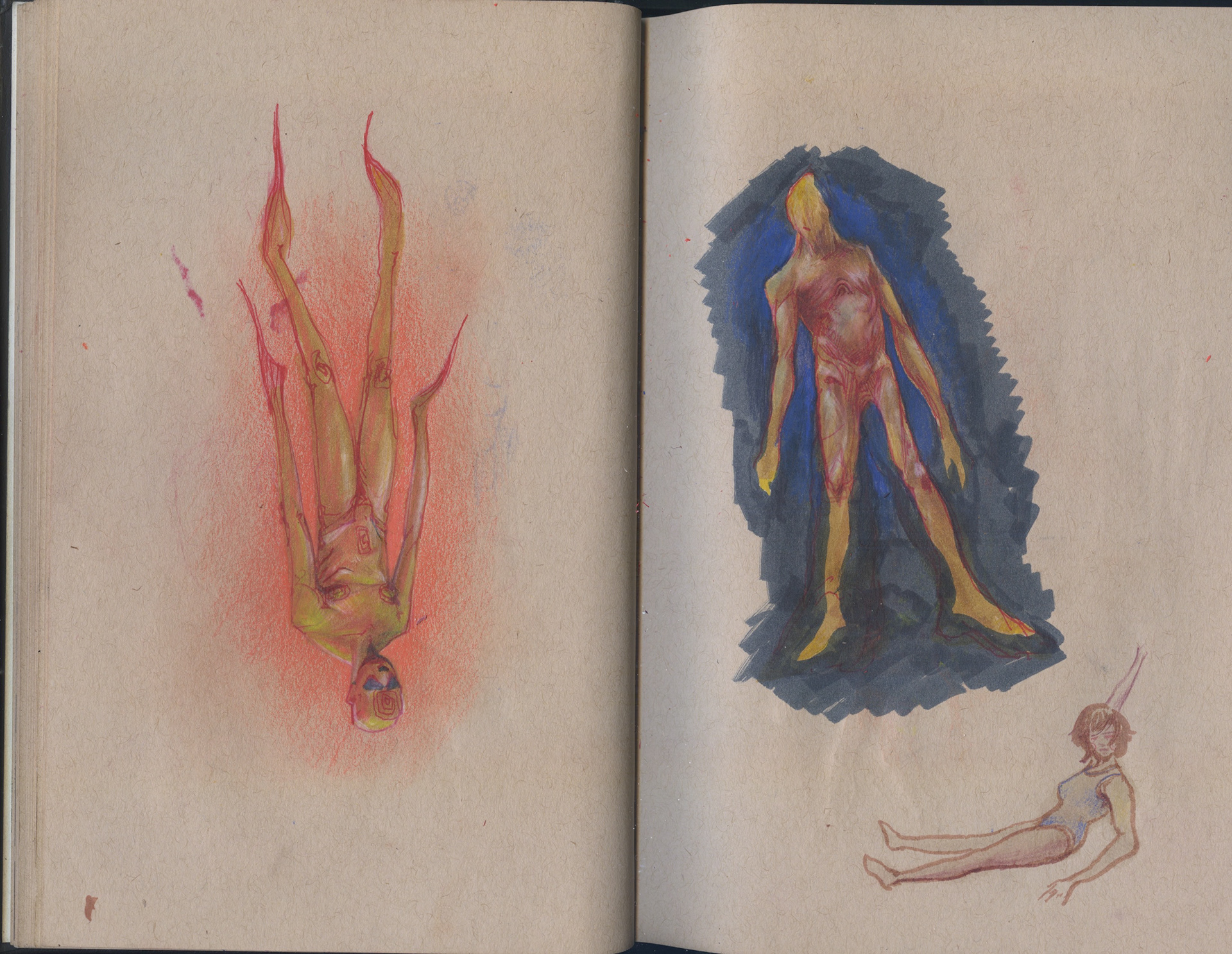 right: the artist in blue was interesting. his paintings were really nice and he had the best anatomy ever. me and tea just wanted to draw him all night. we then asked him to strip naked and we drew him.