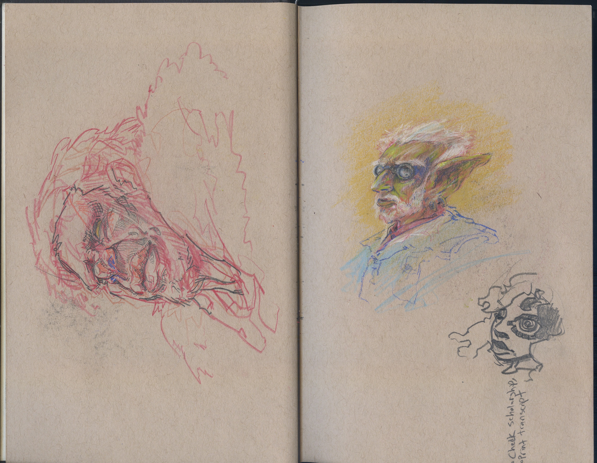 i was so angry when i made the page on the left. I drew this woman's dog for her on the right, in exchange for a drink.