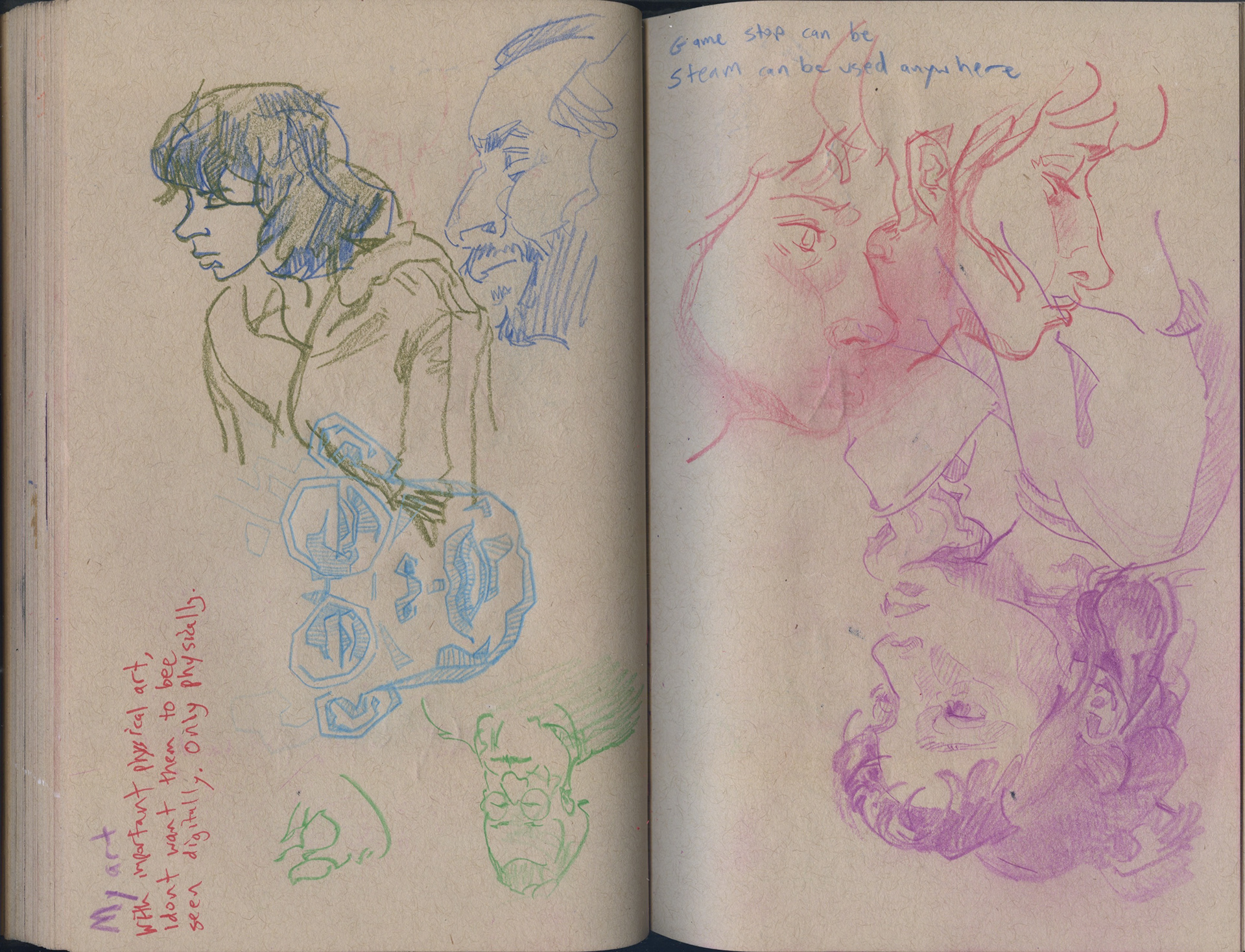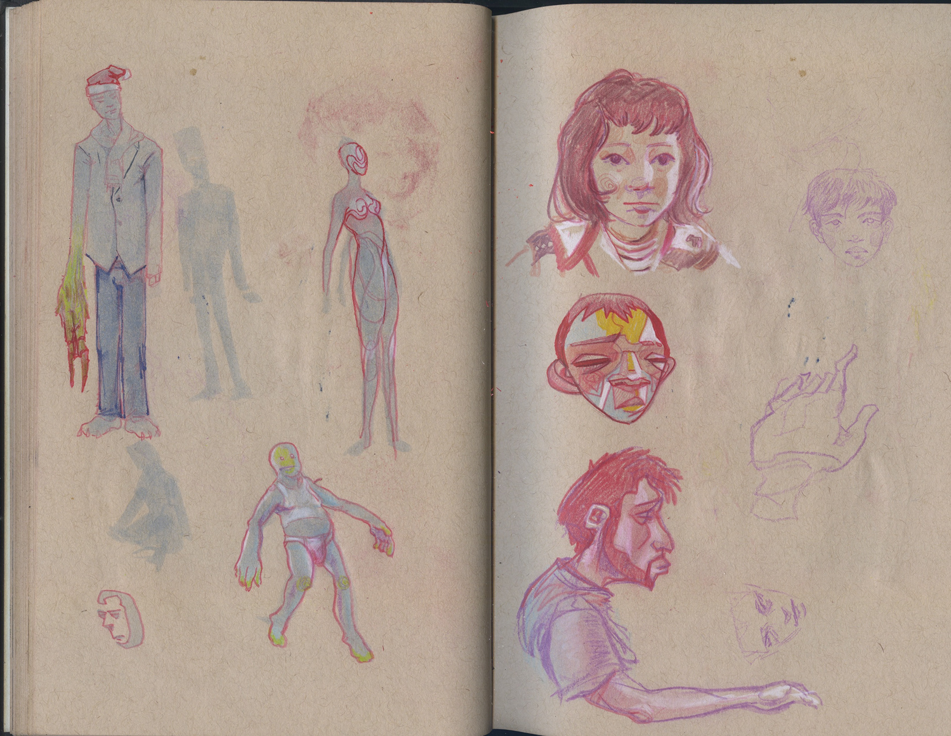 drew some people in my class. my teacher liked them and might commission me to draw some of his coworkers in the same style for their website. i hope he does because i need money.