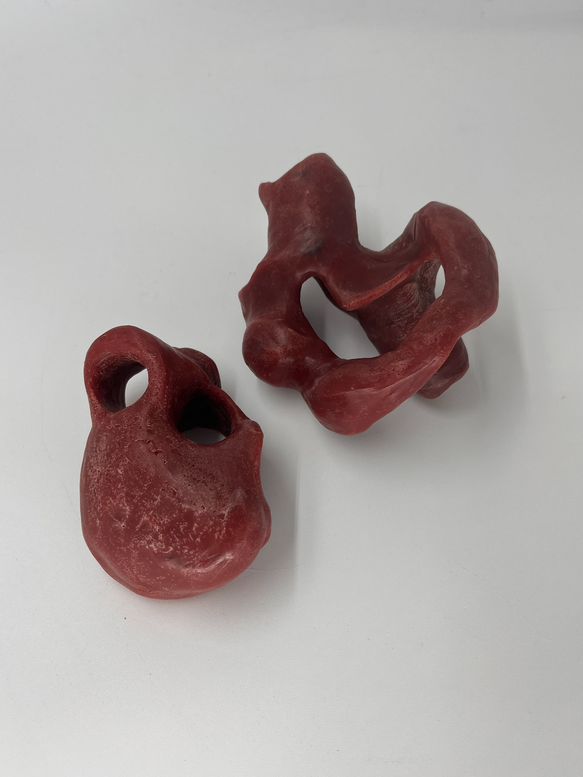 each sol communicates with it's other through how the user interacts with the two. possible combinations and solutions were formed, calling for the user to discover how the shapes merge and fit in the users hands. there is no right answer.
